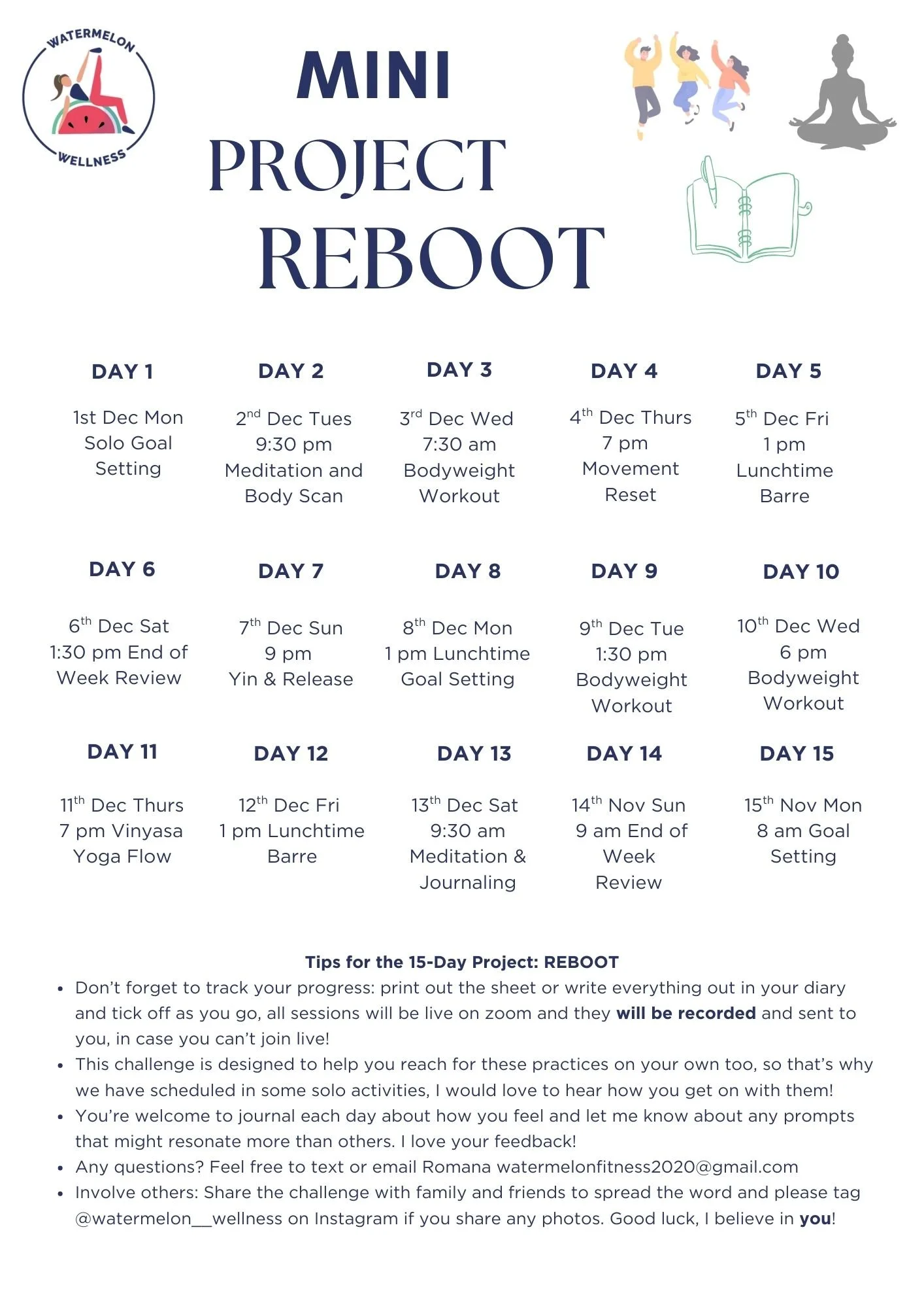 If you’ve been juggling everything and feel like self-care has fallen to the bottom of the list, you’re not alone. That’s exactly why I created The 15-Day Project: Reboot, a full-body, mind and soul reset designed for busy bees like you to get you filling your cup before the madness of Christmas.